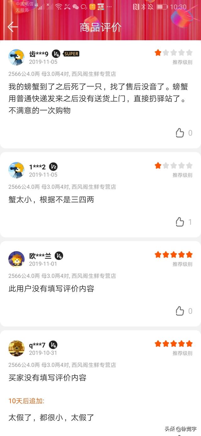 西风阁最坑,螃蟹根本缩水严重,缺斤少两,还说螃蟹吐泡泡,吐泡泡可以吐掉一半的重量,买了要小心。