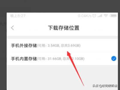 5、我们就可以把存储位置设置为【手机外接存储】,如图。