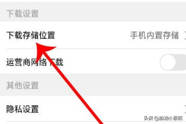 4、【设置】依旧点开后,【下载存储位置】点按下,如图。