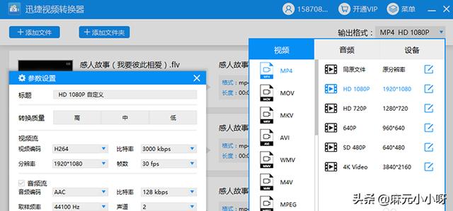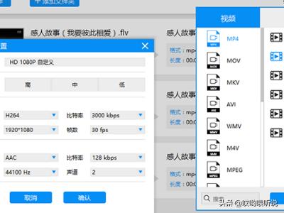 4、然后点击输出格式中的视频,再点击MP4视频格式,选择视频的分辨率,后置的按键可以设置视频的分辨率、比特率等参数,